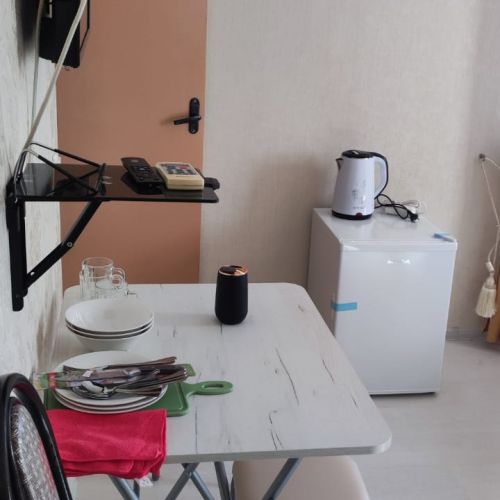 Здание гостевого дома состоит из 3 этажей, в котором размещены номера различной вместимости. В каждом номере есть необходимая мебель, телевизор, холодильник, телевизор, санузел с душем.
